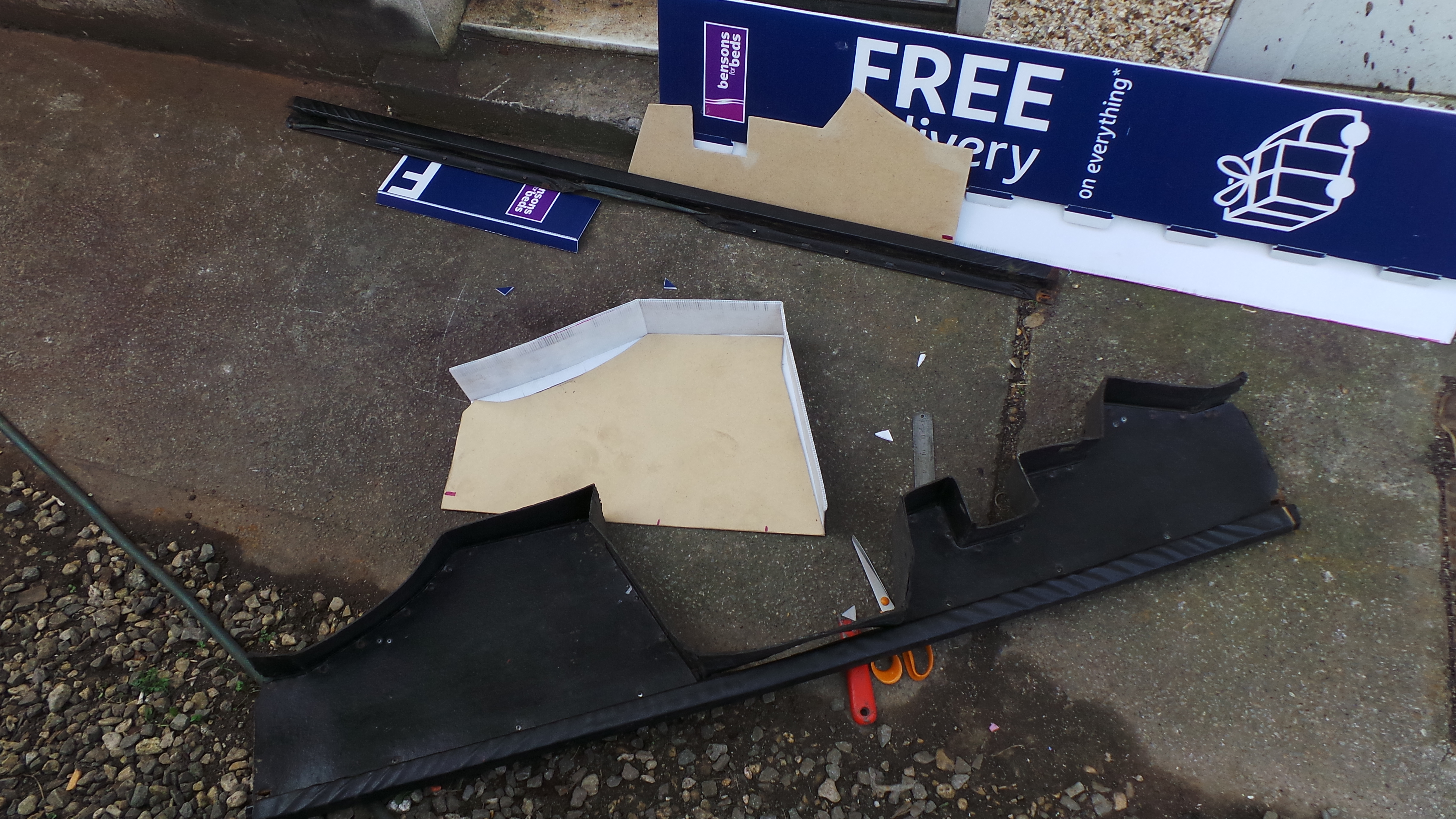 Finished welding up PTH and put the interior back in. The original parcel shelf fell apart so I found some of this corrugated plastic which is ideal for making the backs. Just got to fix it together now and paint it.