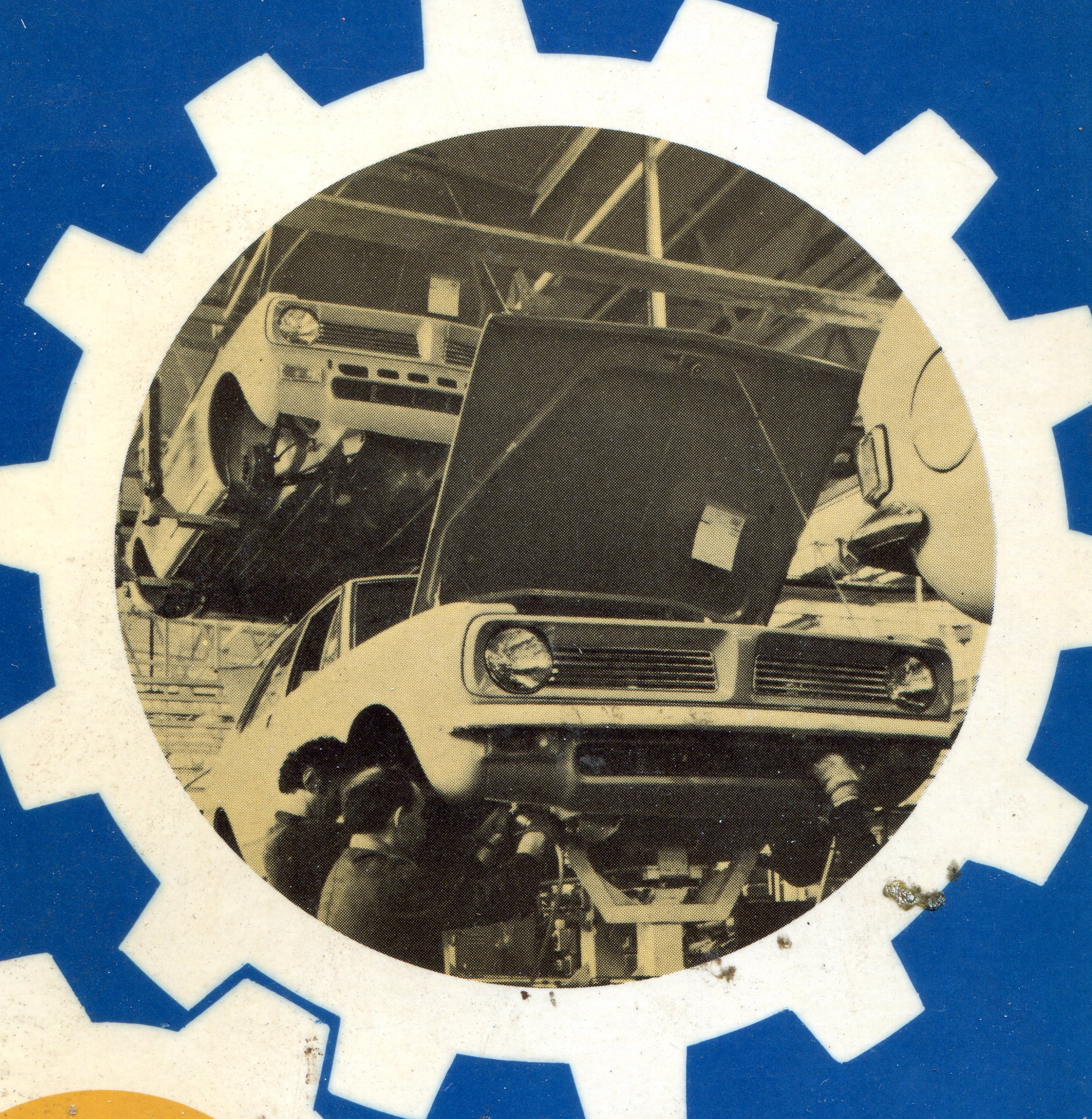 The one in the air has lights and suspension but no front bumper. The one nearest the ground and the camera has a front bumper, but they're putting the engine in or doing the engine mounts, as Morris said. When did the bumper go on? Did the car at the top fly over the bottom one to another station, or does the same crew that fitted the engine fit the chrome work? This picture poses a production line conundrum!