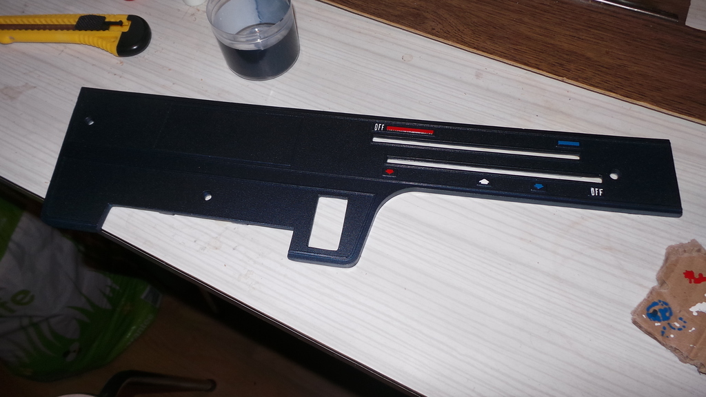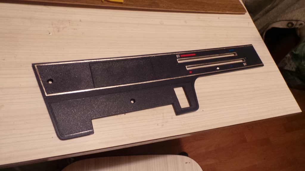 Here's some pics of it with the silver trim. It's an imitation silver leaf. It's a new method I'm trying just to see how good it is... I have no idea yet as to how well it will hold up when in a car in daily use! It'll need a coat of lacquer so it don't rub off but I haven't done that yet. I was using silver foil tape which so far has been the easiest to work with but it wrinkles if the fascia is flexed too much. The silver leaf is a hell of a lot harder and time consuming to apply but gives a really good result