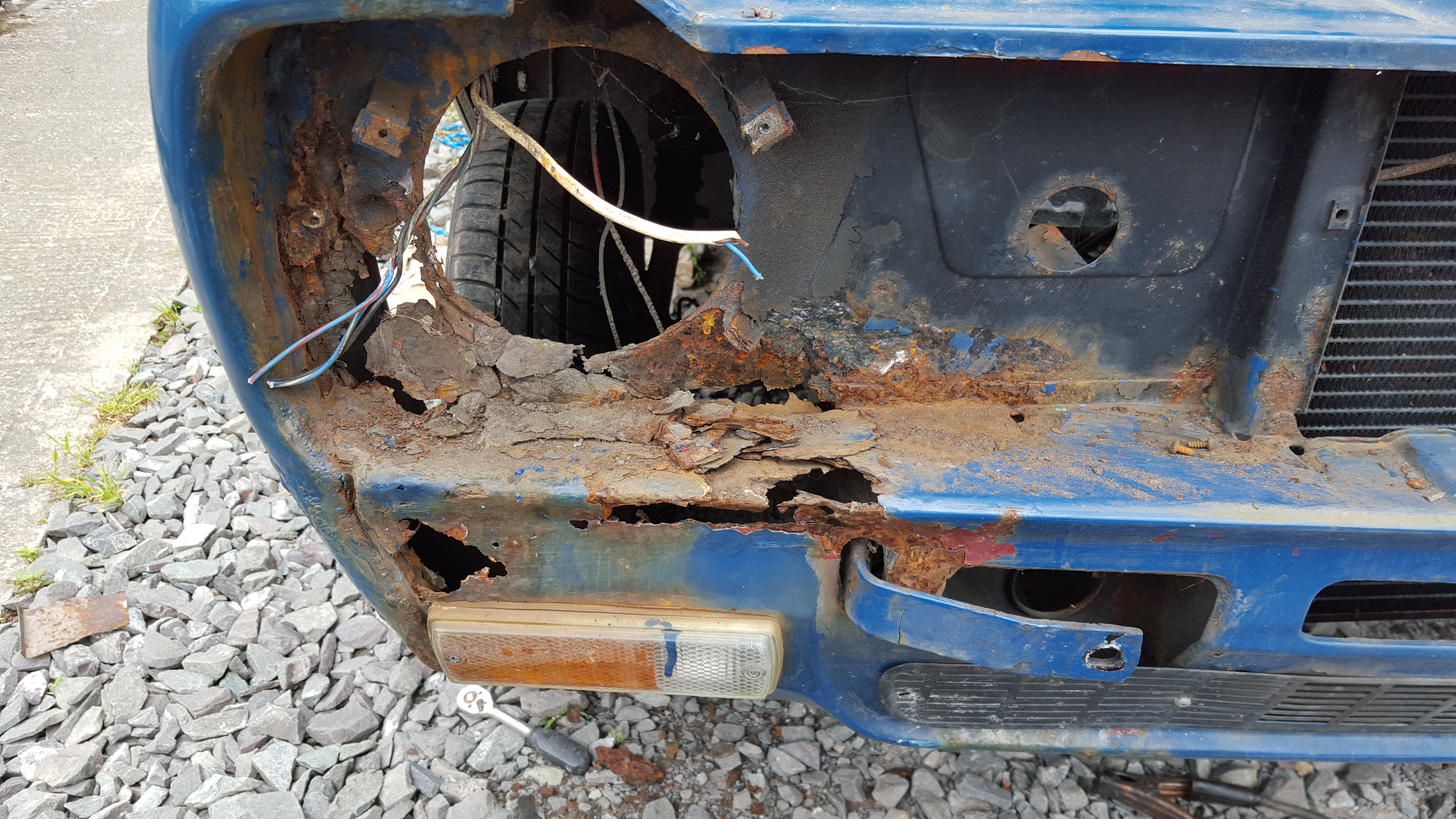 I guess it was not a front wing you were fitting as when fitting it you would have to remove the grill to do so! Or do you mean before you fitted the wing you decovered the rot around the headlamp?
