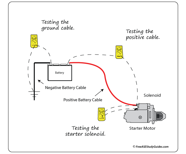 5 Check body and starter earths for volt drop under load again should be below 0.25 Volt The above testing can be carried out with a cheap Digital Multi Meter in about 10 mins without any dismantling.
