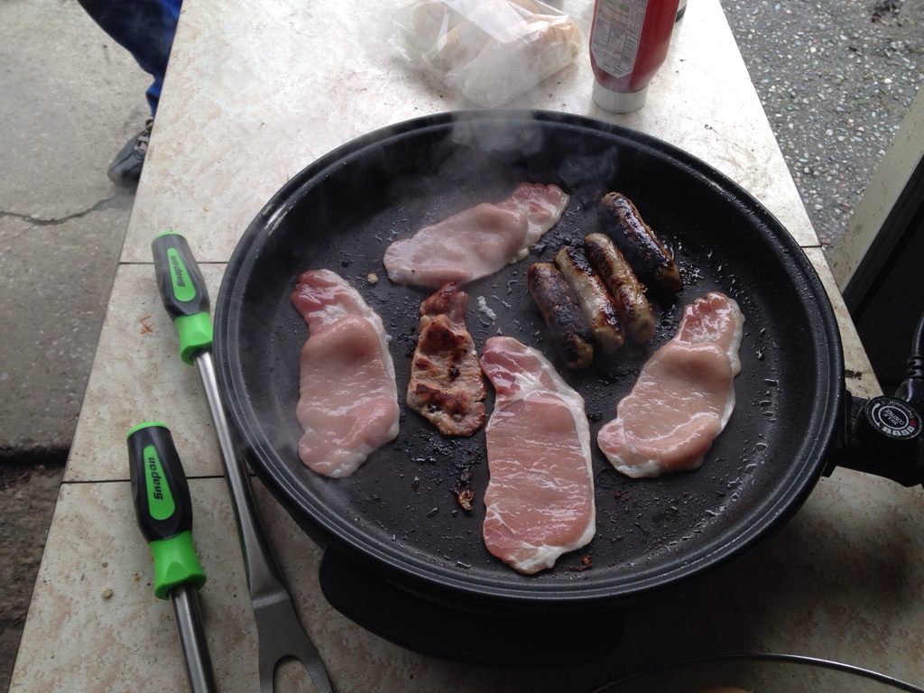 a quick pic of us in the cosy garage on Sunday.