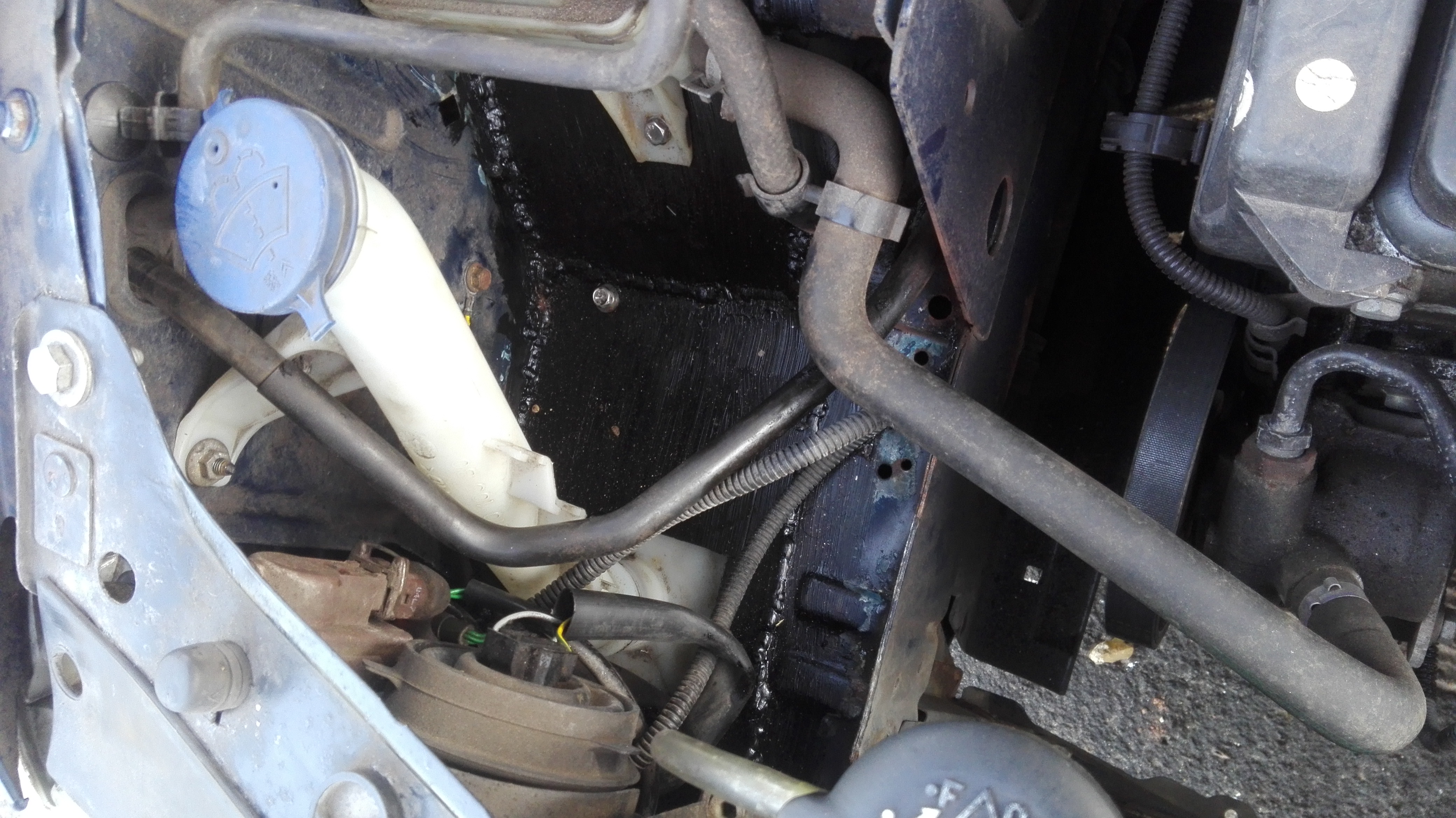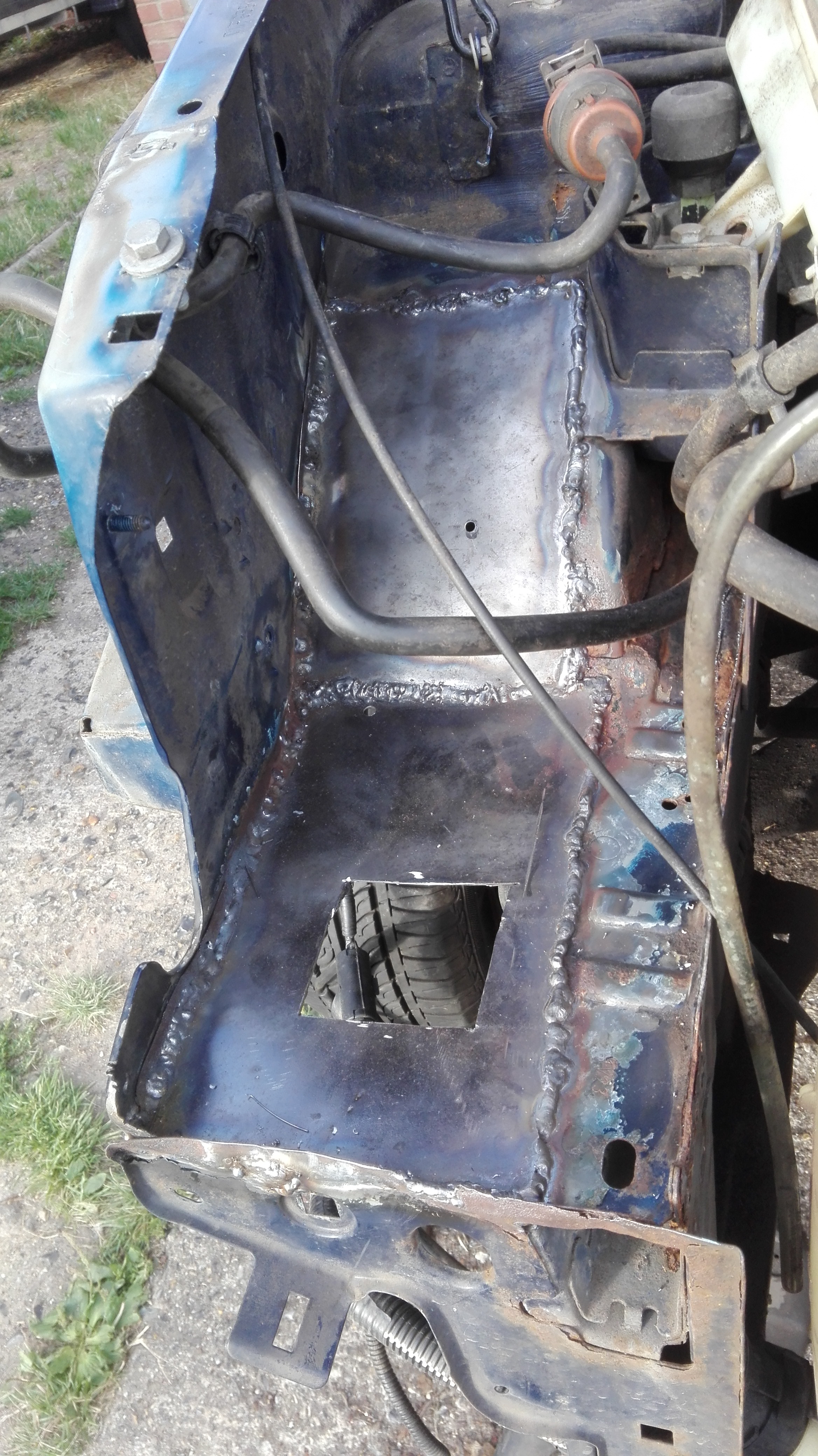 I didn't get a picture of the other side completely welded with the hole cut for the screenwash bottle as it was getting dark. We just need to rebuild it all now and it'll be ready for work Monday, otherwise REW will be in use for a few days. I'll need to drill a few holes for nuts and bolts to hold things on as a lot were seized and wouldn't budge. Then it needs a long overdue service (oil, filters, plugs, coolant, brake service, etc, etc), a clean inside and out, wheels painting (done 2/4 last year so its been looking odd for a while) and it'll be back up to scratch :thumbup:.